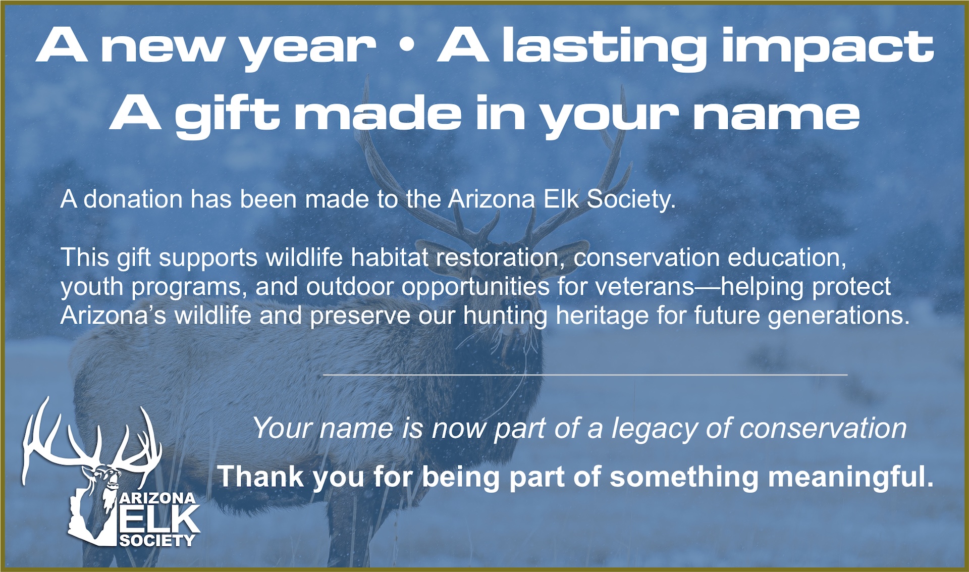 to all wildlife species. Since 2001, AES volunteers have hauled over 4,000,000 gallons of water to drought-stricken areas of elk range and restored and maintained more than 400 wildlife water catchments in Northern Arizona for the survival and betterment of all species of wildlife. The maintenance and filling of water catchments for Arizona’s wildlife remain a top priority of AES.