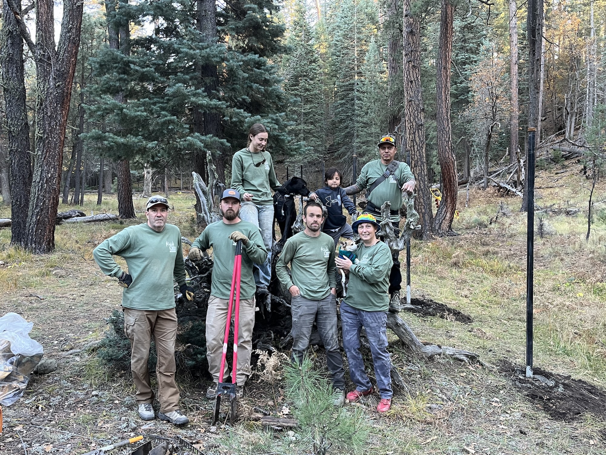 On October 24 the Arizona Elk Society headed to the forest for our last project of the season. We were heading up to Houston Draw to start a new fence and put in some erosion control structures. As we got up to our site, we set up camp quickly and headed down to the project site. Our goal for Friday was to complete the one rock dams and to get all of our corner posts set so we could run string for the rest of them on Saturday. We broke into 2 crews and went to work. When we tried to start our concrete mixer, we had rented, it wouldn’t start, so we had to mix concrete by hand in a wheelbarrow. We did finish the structures and get all of 7 of our corner posts set.